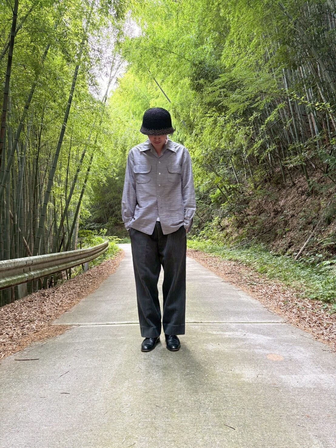 グレーボディの絣柄。ボタン外れなし、破れなしです。質感的におそらくポリエステル×レーヨンかと思います。