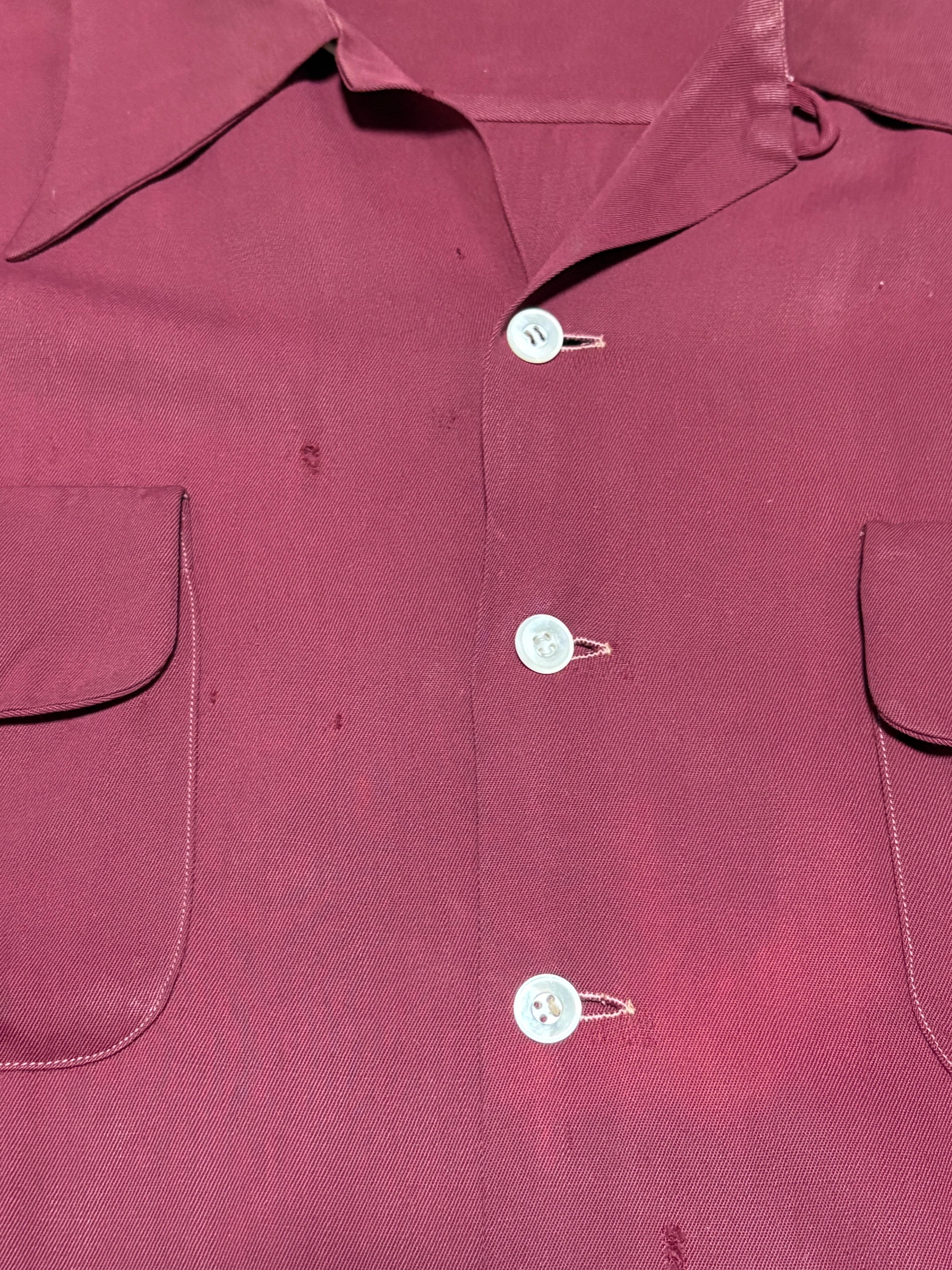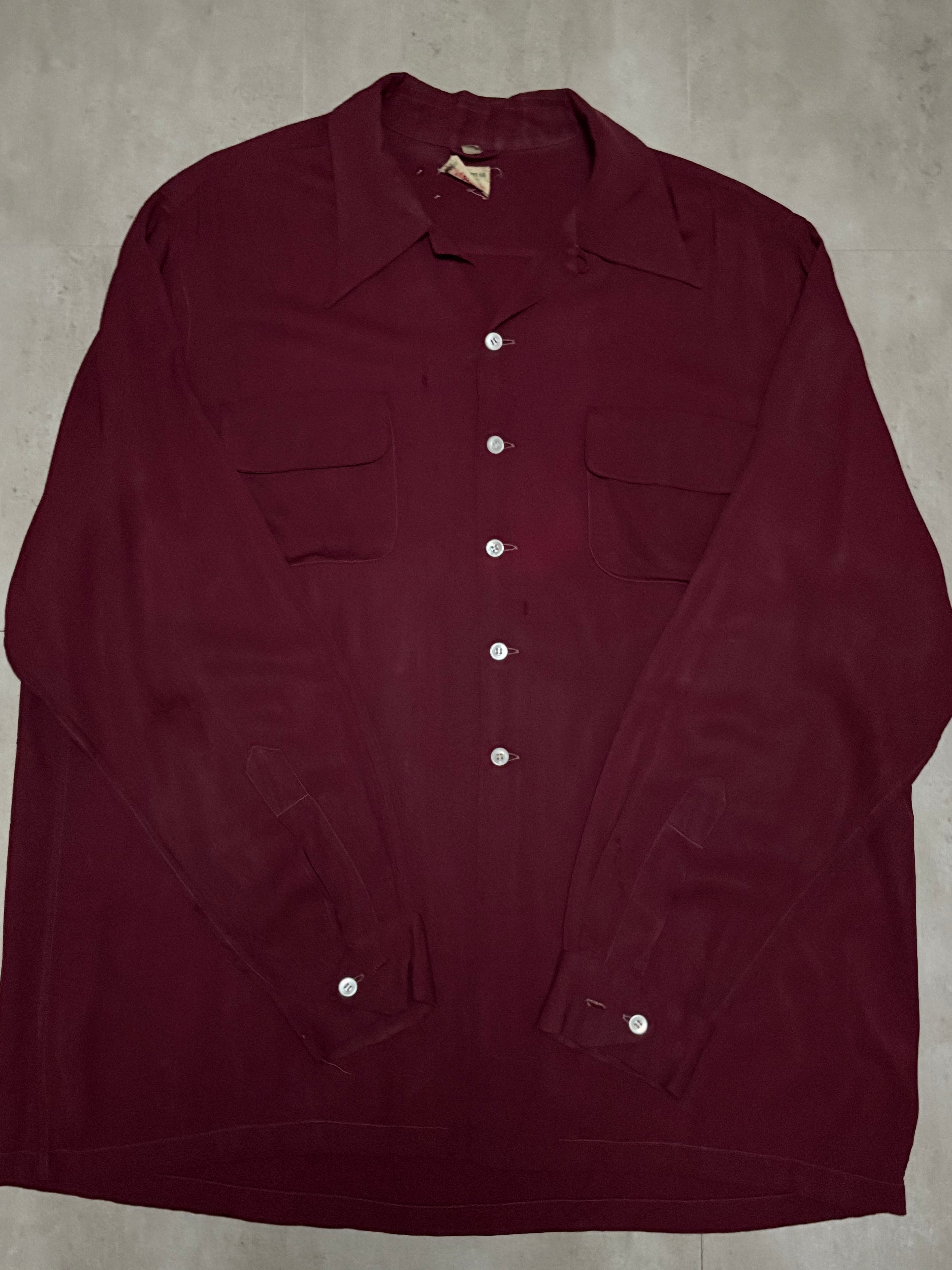 40年代。ボルドーの色味、レーヨン素材特有の光沢感から上品さが感じられる1着。