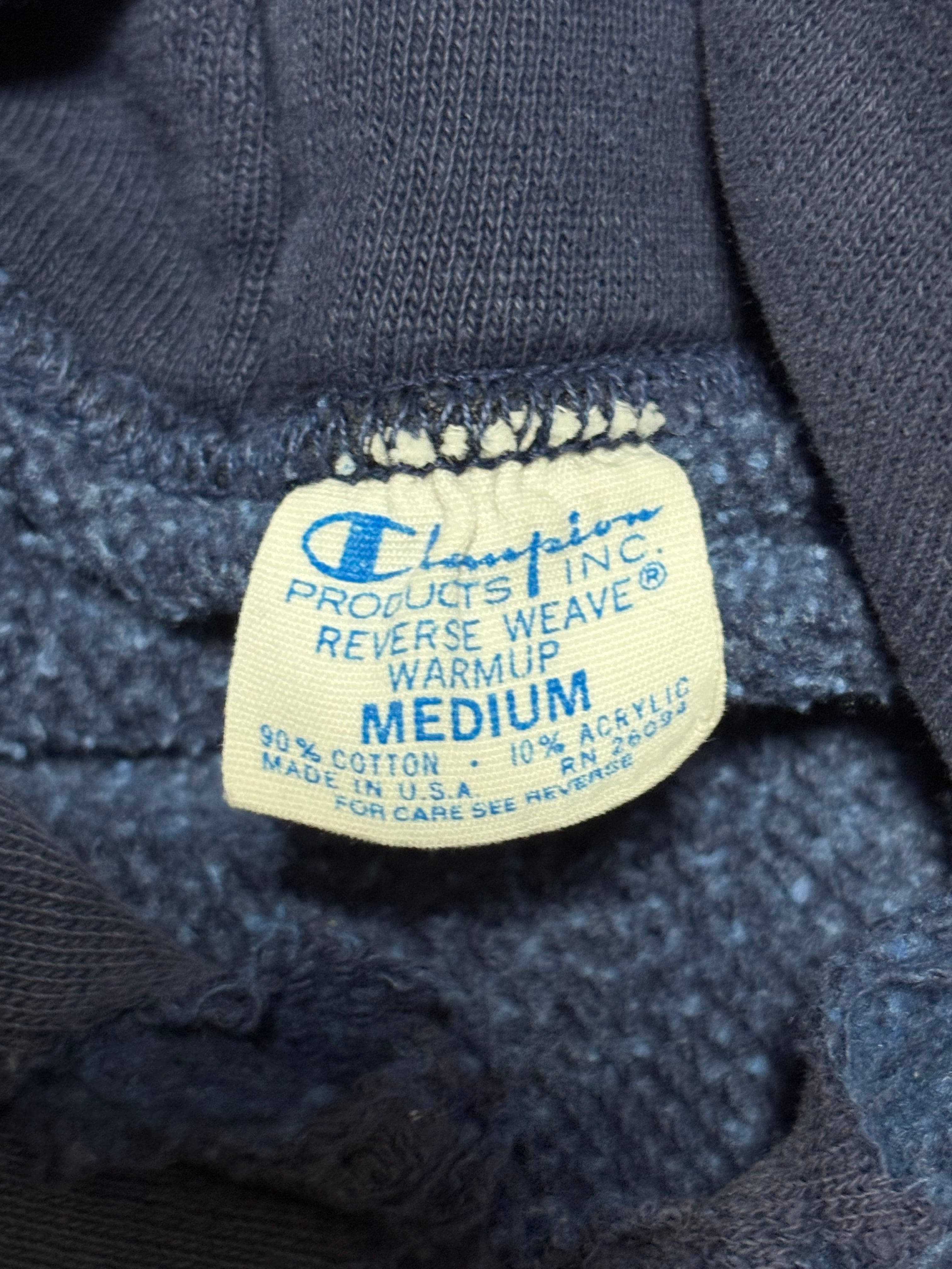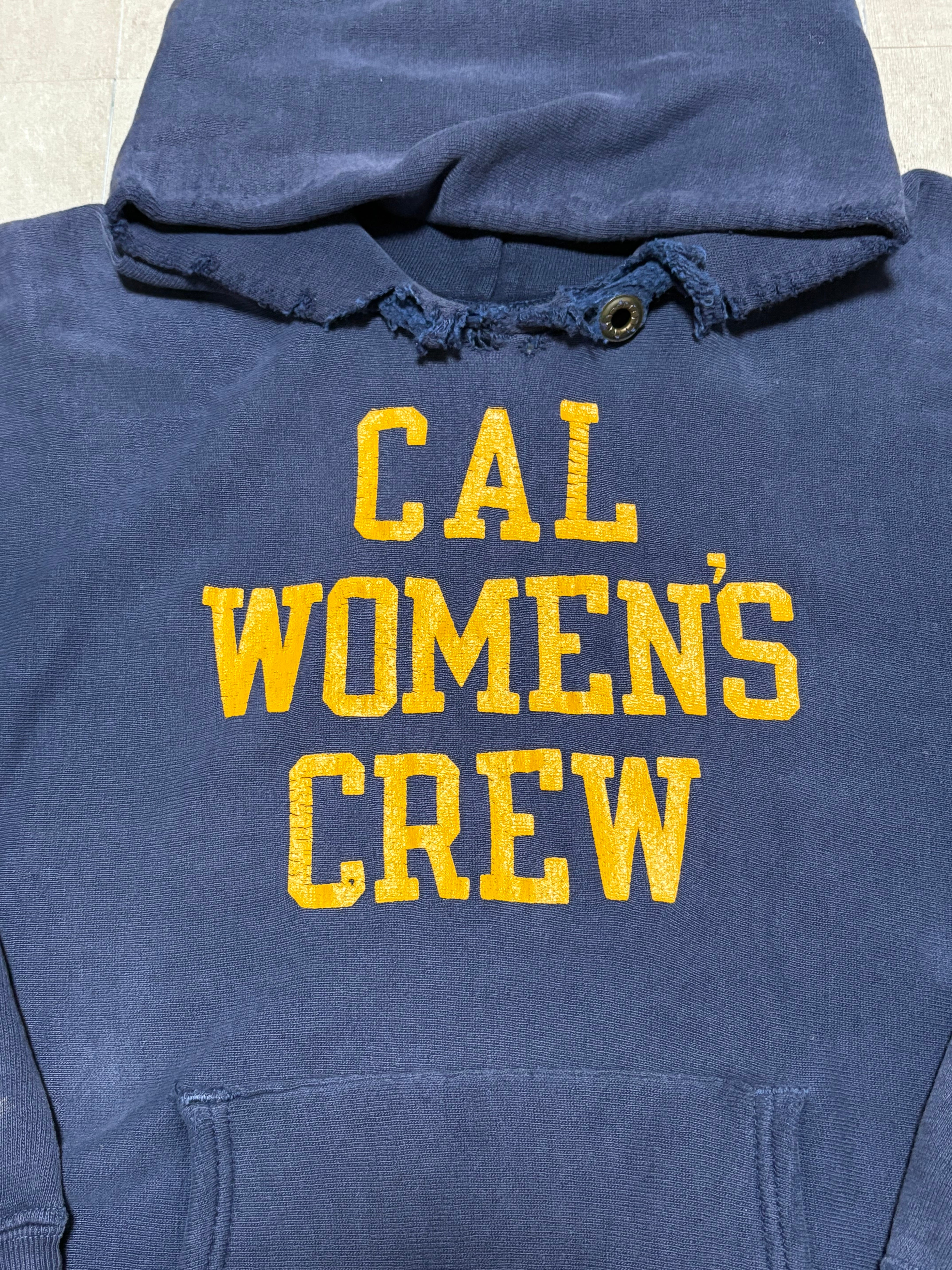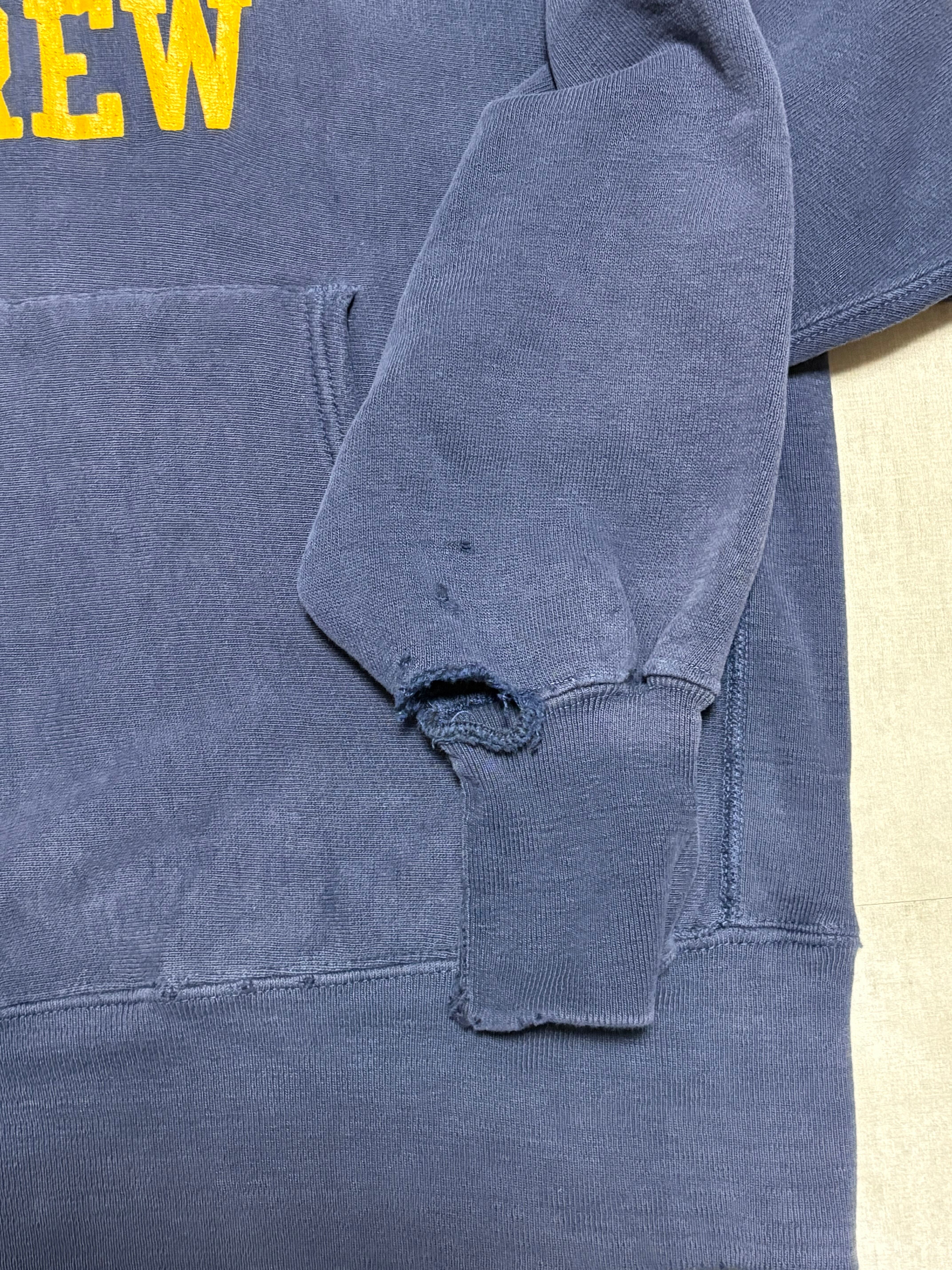 フェードしたネイビーにイエローのプリントがつく好配色。首元と袖のダメージの雰囲気もかなり良いです。リバースなので生地が厚くダメージを気にせず着れるかと。