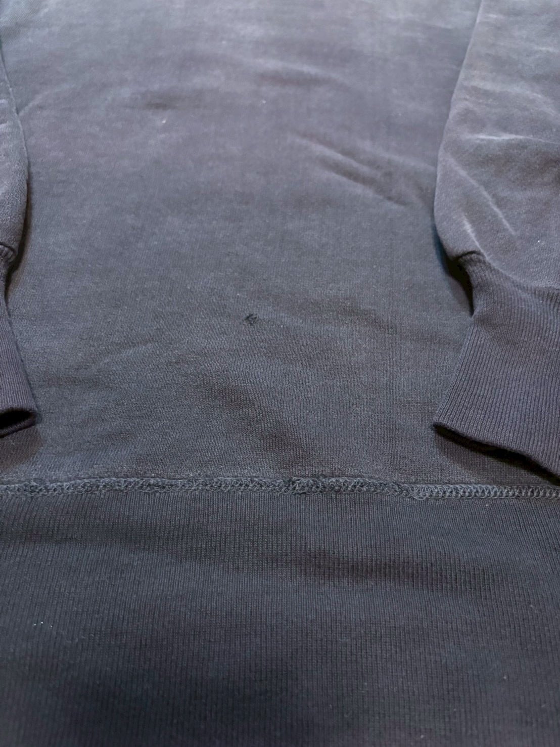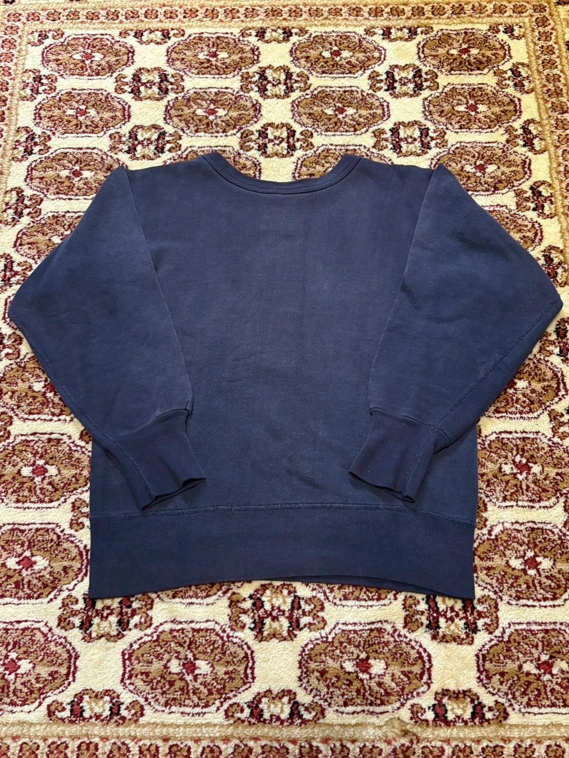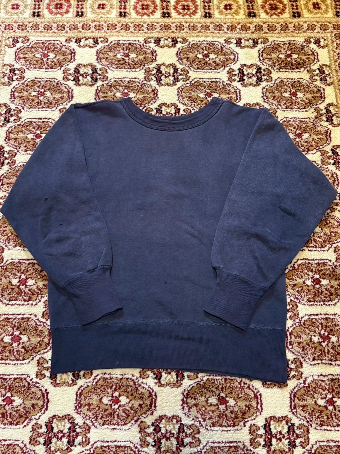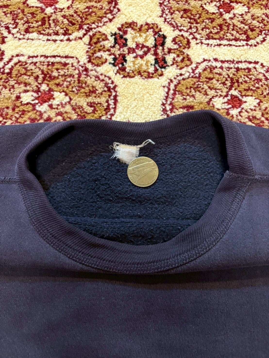 50〜60年代、フルーツオブザルームのナス紺スウェット。セットインスリーブで長リブ、しっかりヴィンテージらしいディティールです。