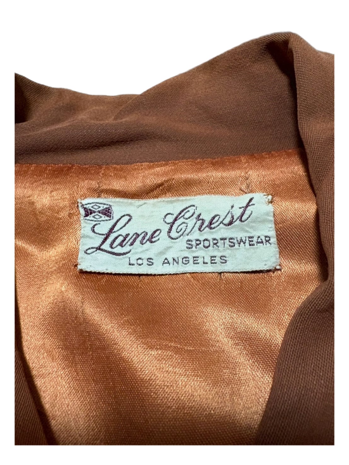 洒落たブラウンの色味、そしてバックの刺繍が完璧です。