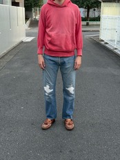 ちょうどいい赤フェードの色味、そして身幅64とヴィンテージスウェットにしては大きめなサイズ感。なかなか出ない1着かと思います。